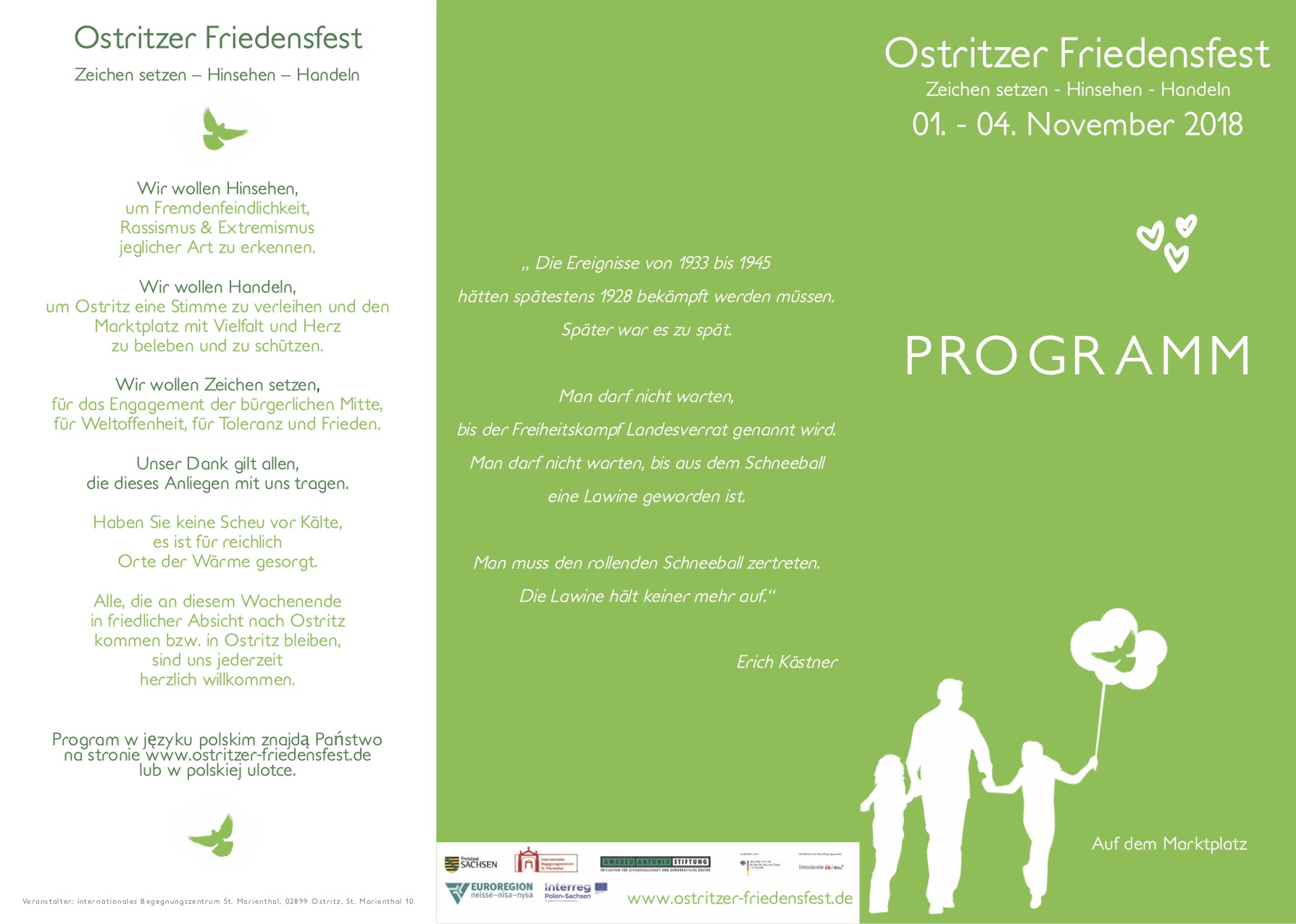Es ist so weit. Das Programm für das Friedensfest im November ist fertig. Hier geht es zur Übersicht auf deutsch und polnisch, hier könnt ihr euch auch die PDFs herunterladen: Programm_außen Programm_innen